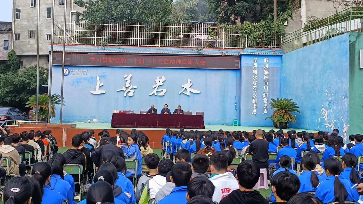10月11日,遂宁市安居区分水镇初级中学校隆重举行了学习贯彻党的二十届三中全会精神宣讲大会。