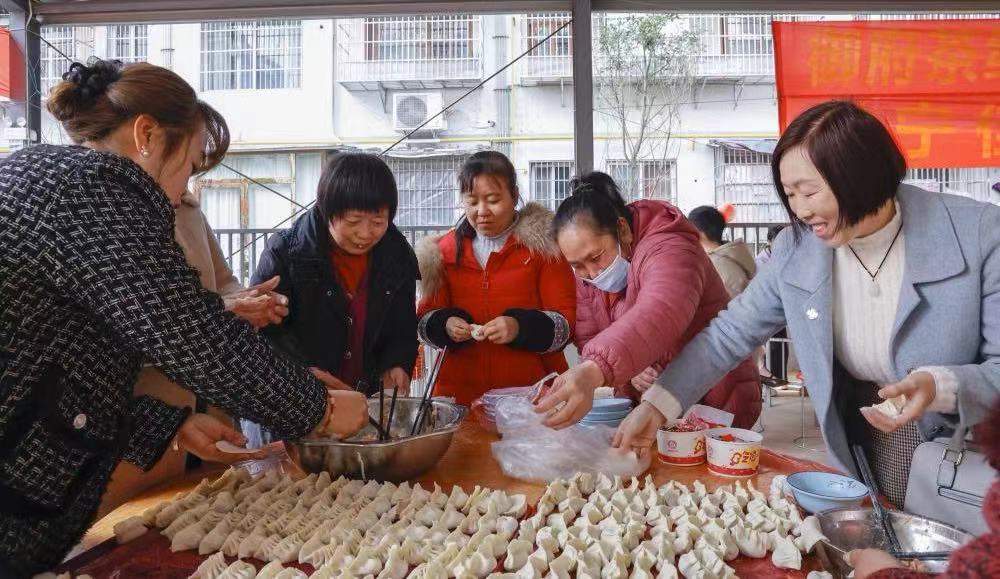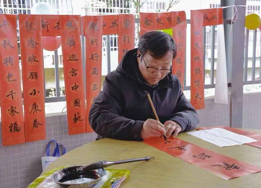 广场一侧,村民们一起包饺子,写“福”字、赠春联,热闹喜庆的气氛,驱散了严寒。一幅幅红红火火的春联,一张张喜气盈盈的“福”字,寄托着大家辞旧迎新、接福纳祥的美好愿望。