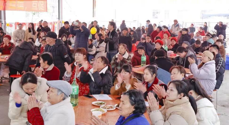 香气扑鼻的佳肴让人食指大动、垂涎三尺,大家一边品尝美食,一边分享收获的喜悦,畅谈新年愿景,整个“坝坝宴”其乐融融。“感谢党和政府,我很珍惜现在的幸福生活,希望未来的日子越过越红火,生活更上一层楼!”潮水村村民田云喜说道。