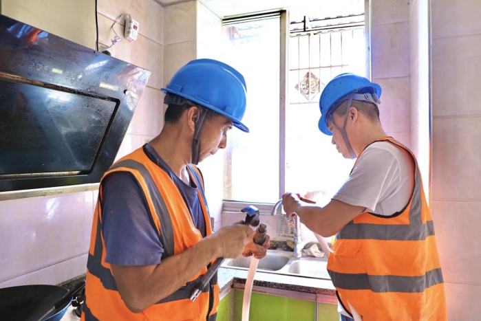 “我们将施工人员分为3个组,每组大概30人,每天一个组可以改造20至30户。”安居区城市燃气管道等老化更新改造工程项目负责人张开国介绍,本次燃气管网改造包括对原有的老旧管道进行更换,把原来室外的塑料管更换为镀锌管、无缝钢管等新型管道,并增加了燃气自闭阀及燃气报警器等,防止燃气持续泄漏引发火灾、爆炸等严重后果,进一步保障居民安全。