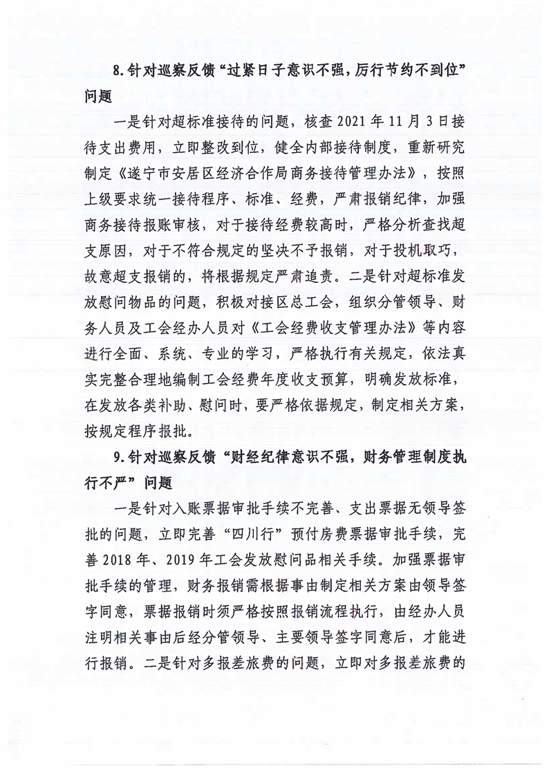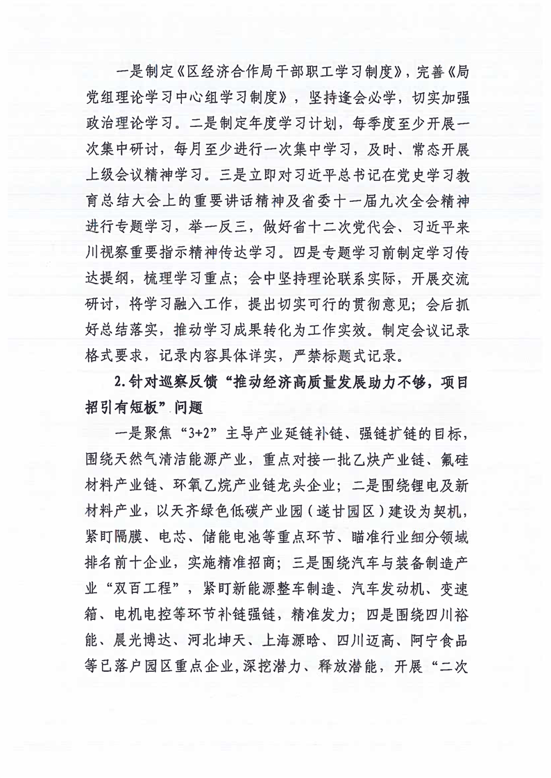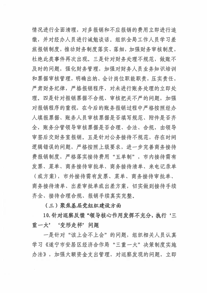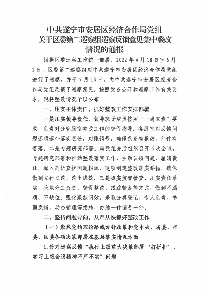 中共遂宁市安居区经济合作局党组关于区委第二巡察组巡察反馈意见集中整改的情况通报