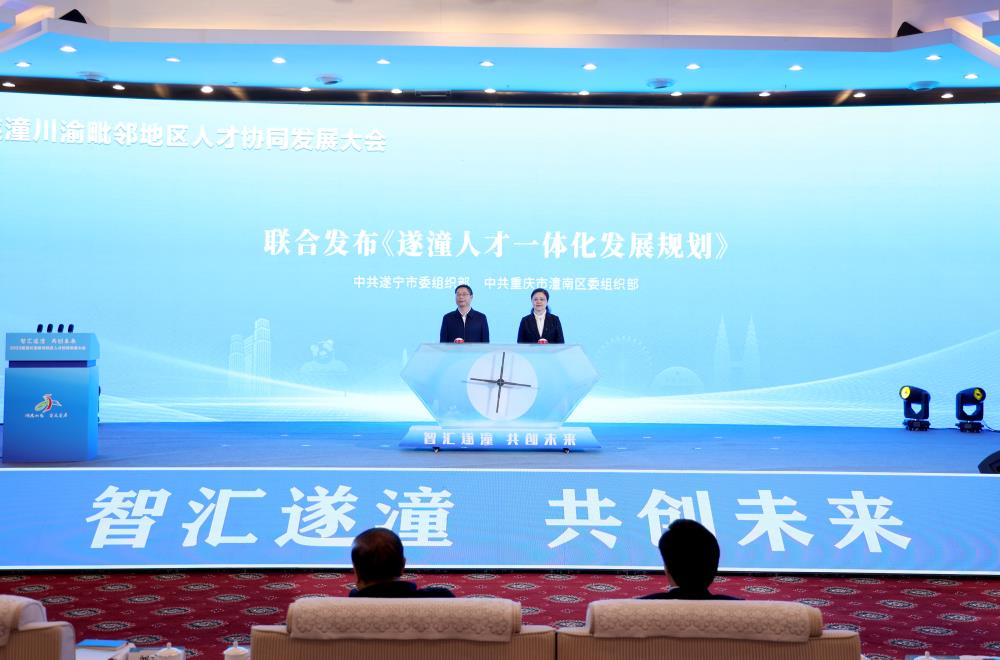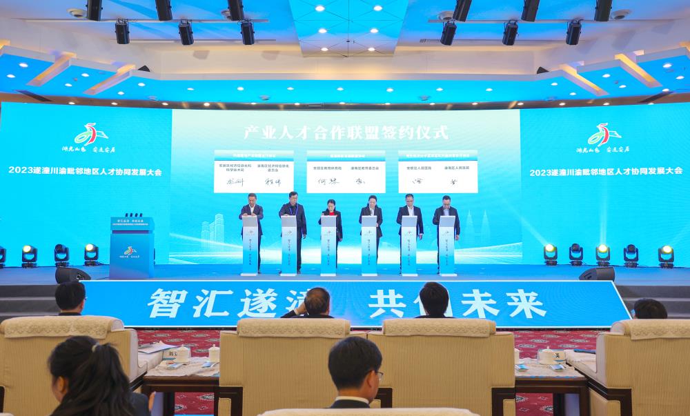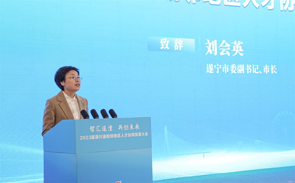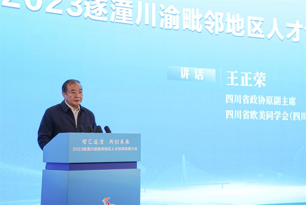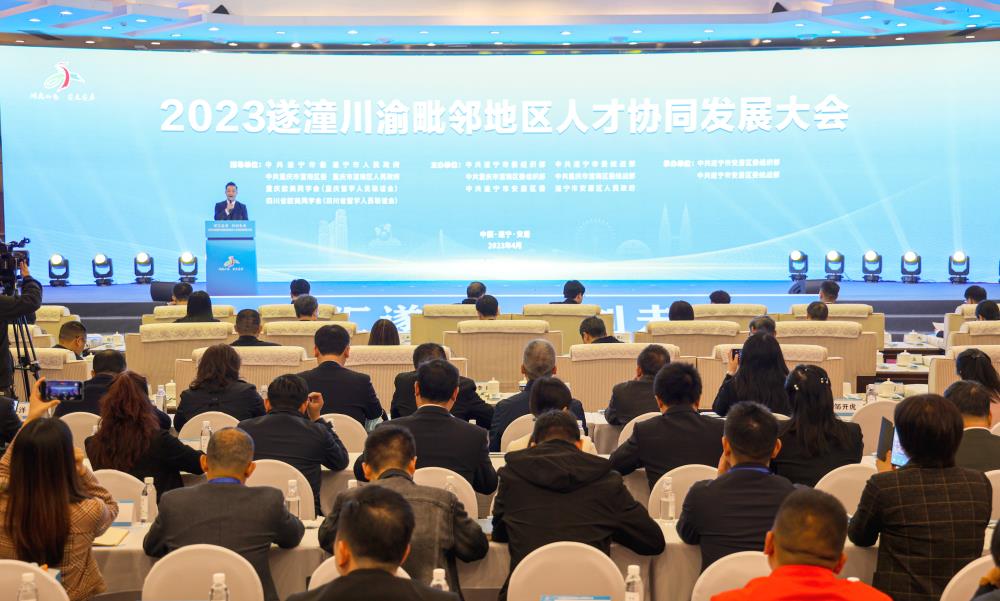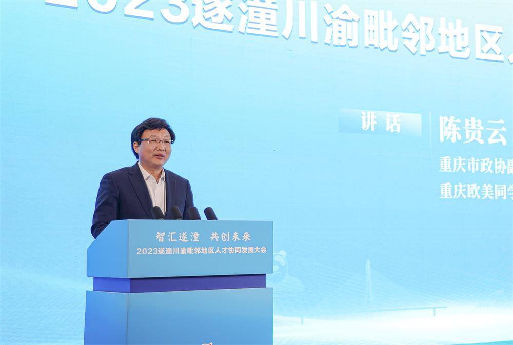 4月7日,2023遂潼川渝毗邻地区人才协同发展大会在遂宁安居举行。重庆市政协副主席,民进中央常委、重庆市委会主委,欧美同学会(中国留学人员联谊会)副会长、重庆欧美同学会(重庆留学人员联谊会)会长陈贵云;四川省政协原副主席、四川省欧美同学会(四川省留学人员联谊会)会长王正荣出席并讲话。市委副书记、市长刘会英致辞。市委副书记、遂潼园区临时党委书记景临出席会议。