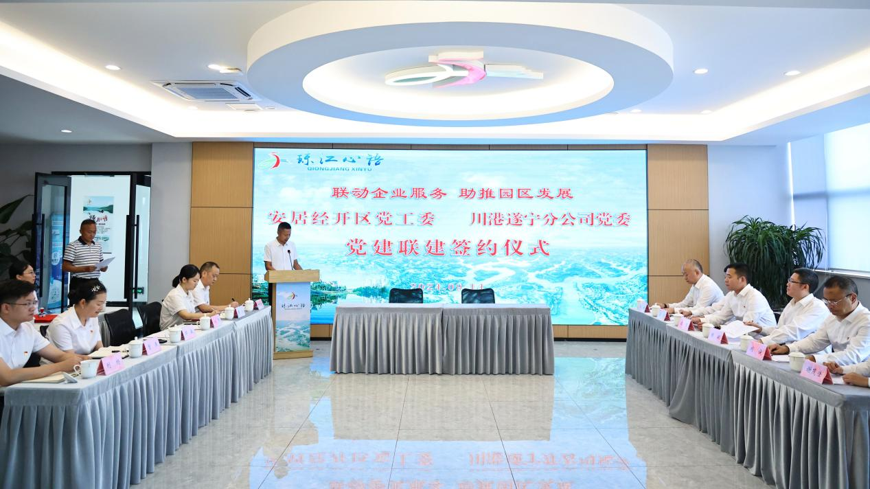 为充分发挥党建示范引领作用,提升党建工作水平,切实加强党组织间的交流与合作。9月14日,安居经开区党工委与川港遂宁分公司党委开展党建联建暨交流共建活动。