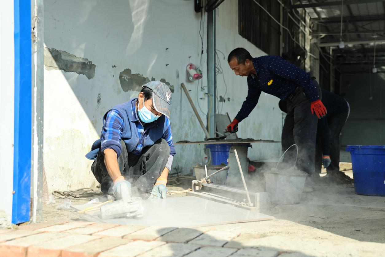 冬日暖阳下,西眉中学校园里多个作业面同步铺开,切割、铺砖……工人们正紧锣密鼓地施工。作为校园“焕新工程”的第二阶段,该工程已进入关键攻坚期,预计在未来两个月内全面完工。