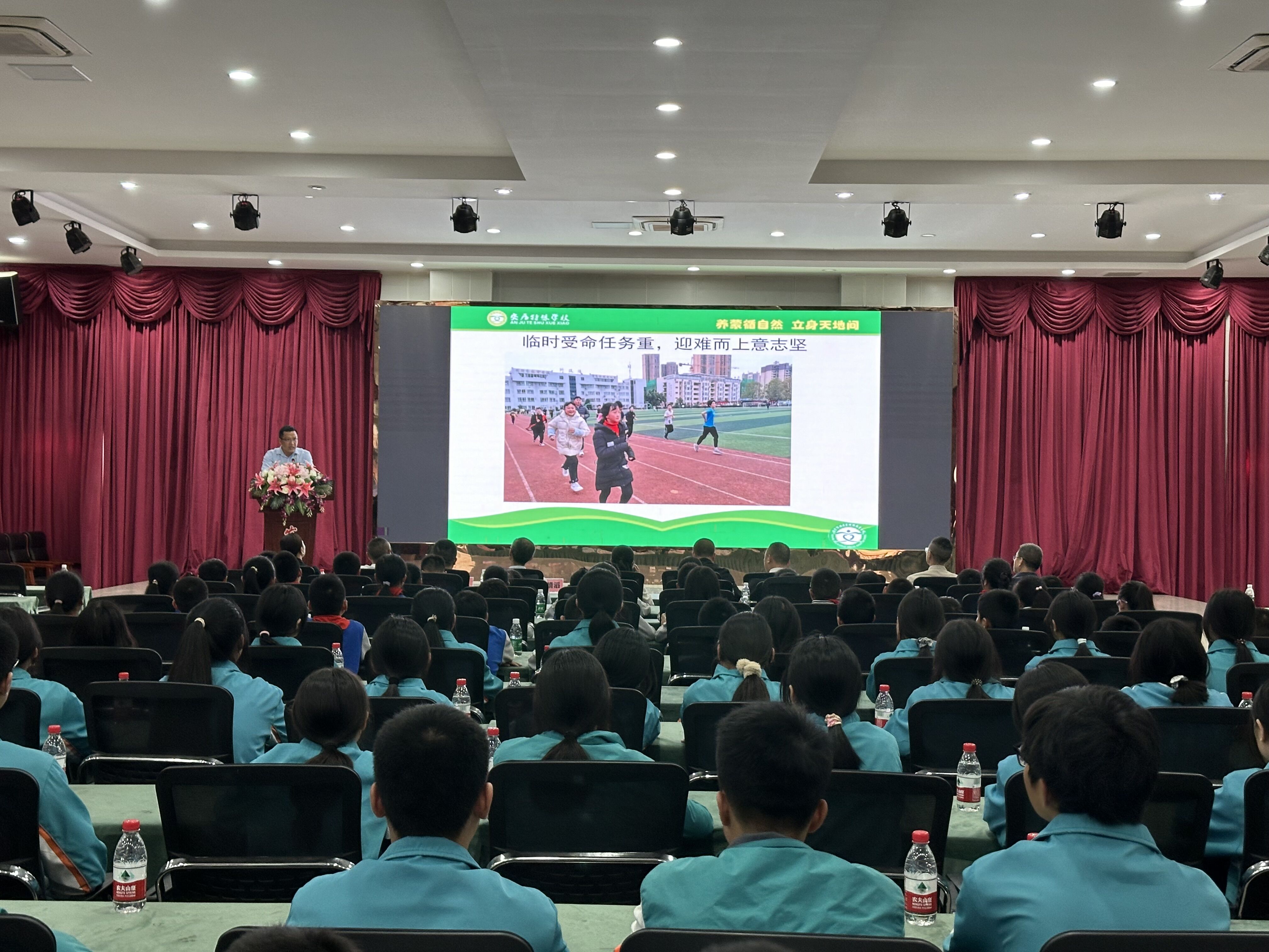 为宣扬安居特校特奥运动员刻苦训练、挑战自我、圆梦赛场的感人故事,4月16号,以“聆听特奥健儿励志故事 点燃莘莘学子筑梦激情”为主题的安居特校特奥运动员获奖先进事迹巡回宣讲首场报告会在安居中学举行。