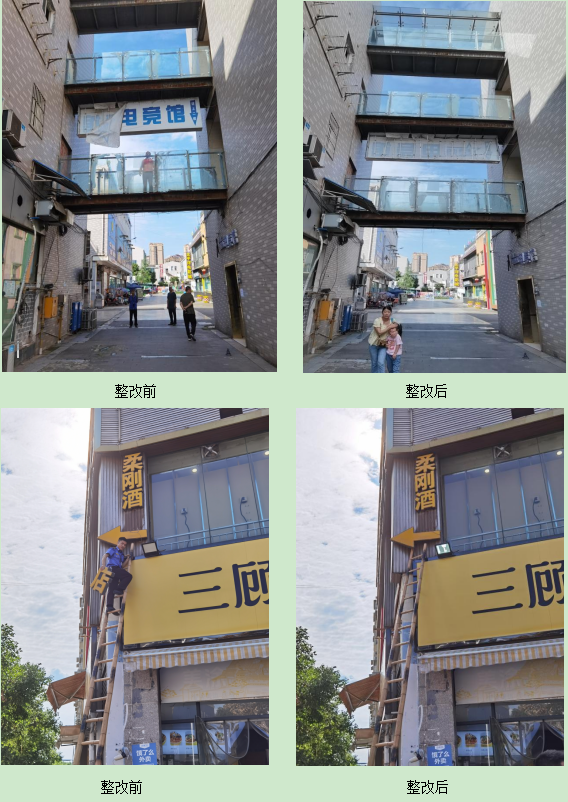 三、分类施策整治。建立《店招店牌安全问题清单台账》,根据排查登记问题分类施策,其中现场整改15处,维修加固5处,自行拆除翻新10处,计划动用机械设备进行拆除10处。