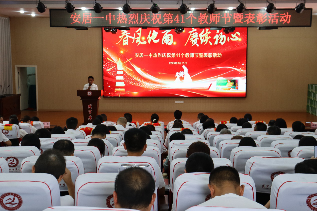 9月10日,遂宁市安居第一中学全体教师齐聚一堂,共同庆祝第41个教师节暨表彰活动。