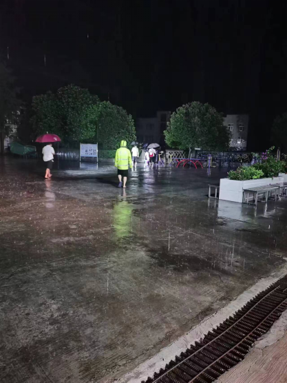 书记和镇长以及多位民警冒着大雨深入东禅敬老院,脚踩拖鞋,马不停蹄地在敬老院四周查看。好在东禅敬老院的工作人员平日里十分注意安全防范和隐患排查。结果显示,一切正常无安全隐患。