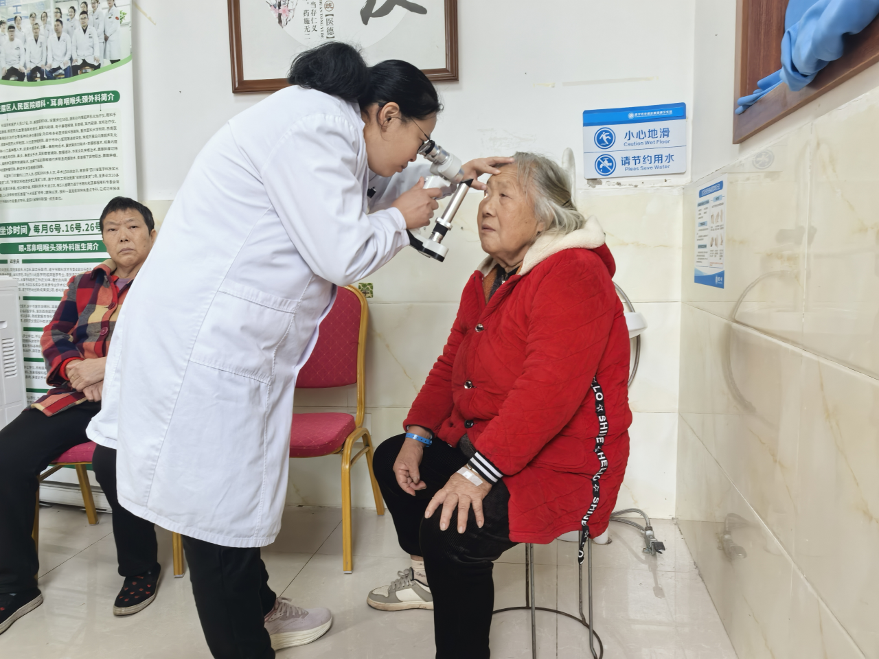 作为区人民医院眼耳鼻咽喉头颈外科的主治医师,从今年3月起,尹宁芝就成了聚贤镇卫生院的“常驻专家”,在这里驻点服务一整年。“咱们镇里老人多,眼表炎症、耳朵里长耵聍、过敏性鼻炎这些毛病特别常见,以前没专科医生,大家要么硬扛,要么往城里跑。”尹宁芝一边给村民检查,一边给小编说。