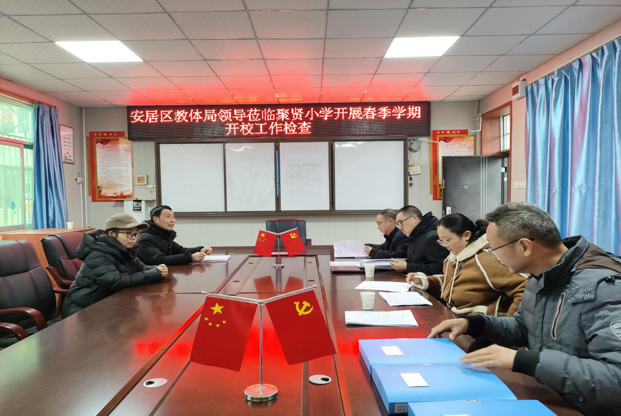 2月20日,安居区聚贤小学全面迎接了安居区教育体育局春季学期开校工作检查。此次检查旨在确保学校新学期各项准备工作安全、有序、高效地进行,为学生们营造一个良好的学习环境。