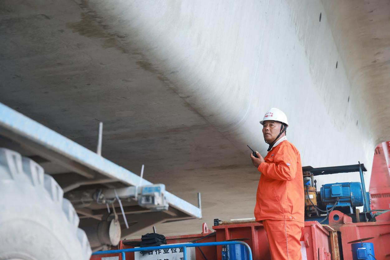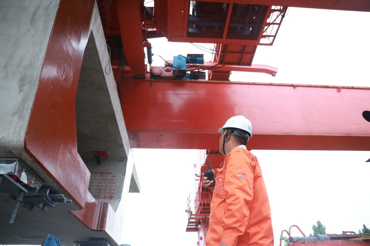 现场架梁队管理人员于小孬一边紧盯架梁作业,一边抹去额角的汗水。这个假期,他如同去年一样,依然选择留在工地。“说不想家是假的,但看着大桥在自己手里一天天合龙,心里特别自豪。”于小孬朴实的话语,道出了许多建设者的心声。
