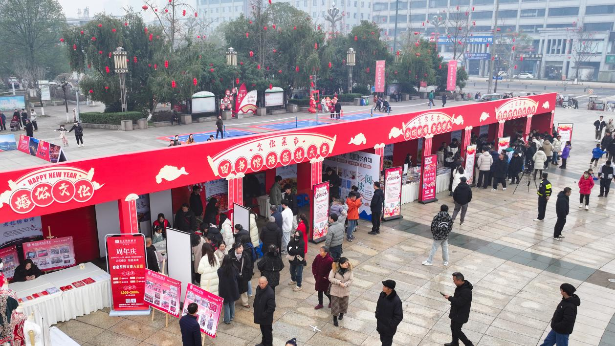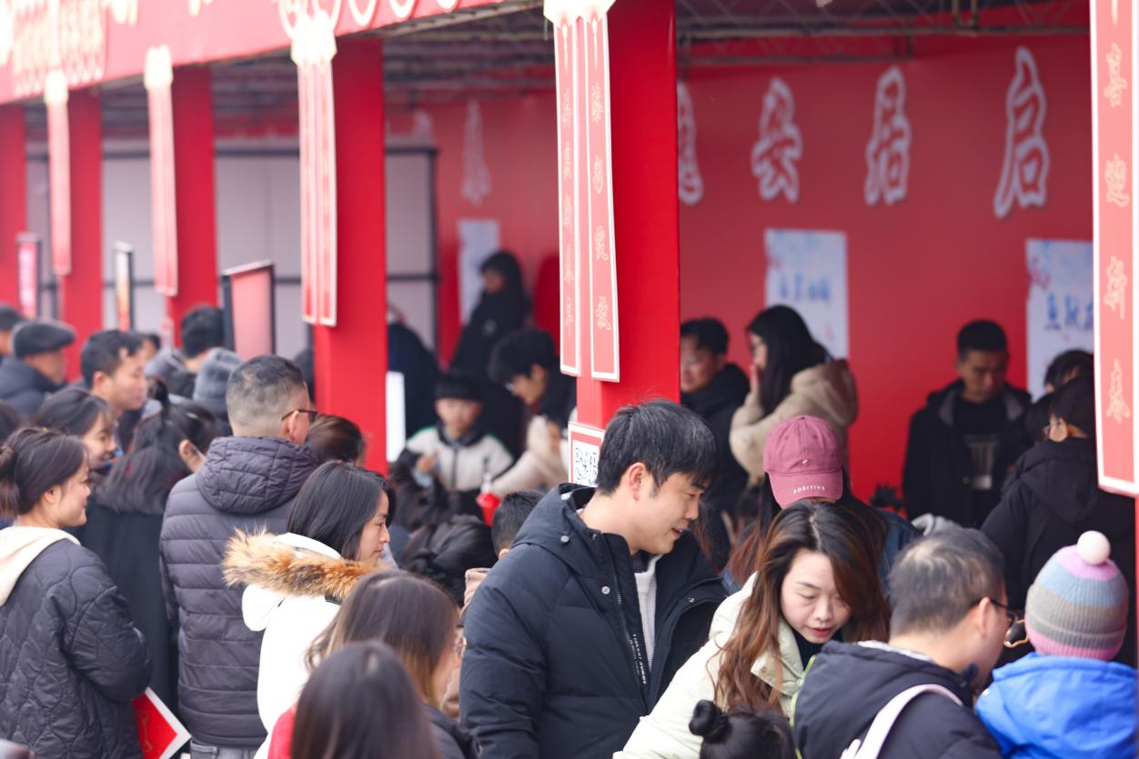 热闹吉祥的氛围始终贯穿游园会始终。游园会还分为展示展销区、运动休闲区,包含新春房市、“职”等你来就业咨询、婚俗文化、商品集市、文化集市、广电服务、金融服务、玩转安居旅游宣介等20个展位。