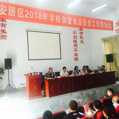 4月19日,安居区食药局和教育局联合组织在西眉中学召开2018年学校食堂食品安全工作现场会,安居区人民政府副区长、区食药安委副主任潘昀,安居区食药局局长杨建勇,安居区教育局局长宋金声,区食药、教育局分管副局长,全区学校校长、食品安全分管副校长、食品安全管理员共计270余人参加会议。