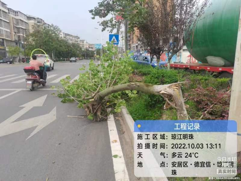 10月以来,我区连续出现几日暴风雨天气,区综合执法局在城区防汛巡查中发现,城区锦华街、梧桐南路、兴业路、栖凤大道、滨江南路等10余条道路出现多处行道乔木被风拦腰吹断,断枝横七竖八躺倒在公路上,过往车辆及市民群众出行存在严重的安全隐患。
