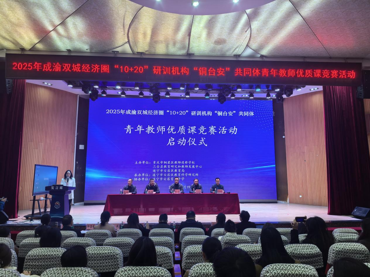 11月19日,2025年成渝双城经济圈“10+20”研训机构“铜台安”共同体青年教师优质课竞赛活动在安居区启动,持续加强“铜台安”三地教师队伍建设,展示课堂教学改革成效,深入推进核心素养导向的“教—学—评”一体化设计探索与实践,促进青年教师专业发展。