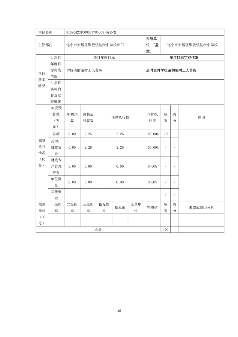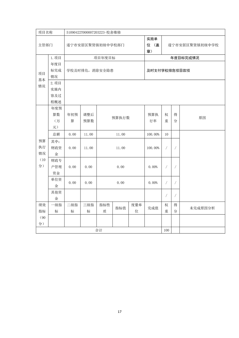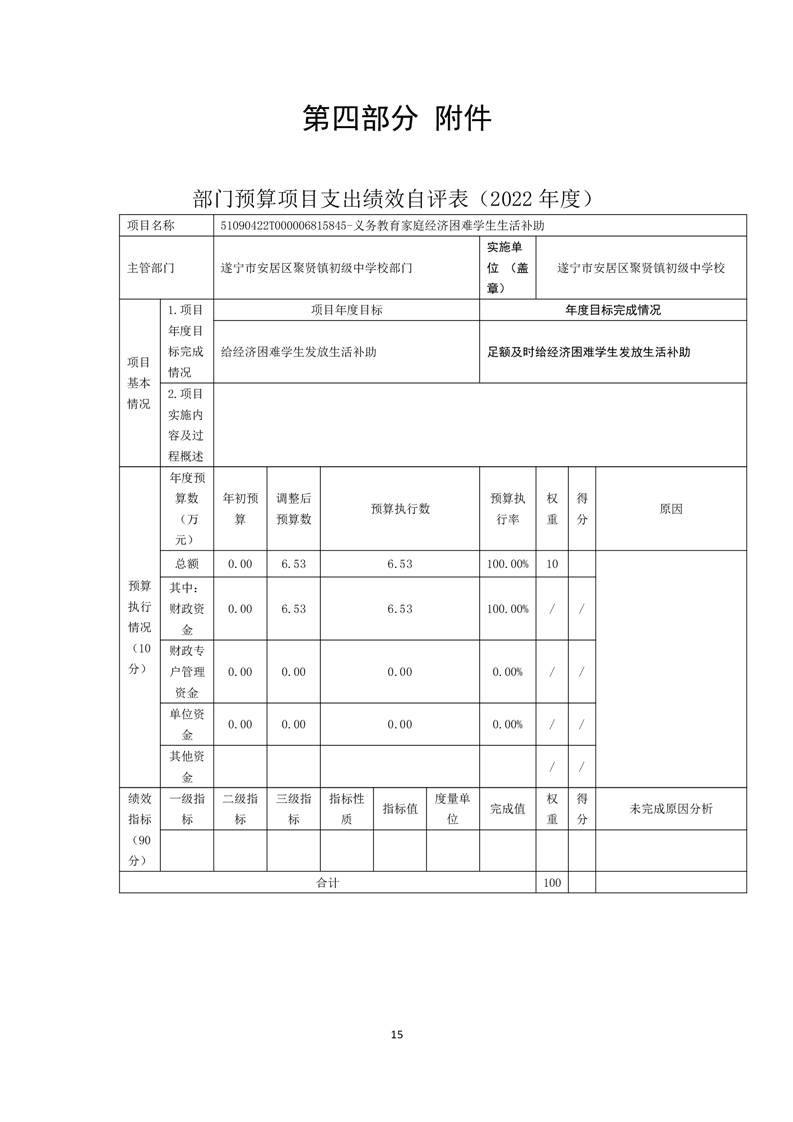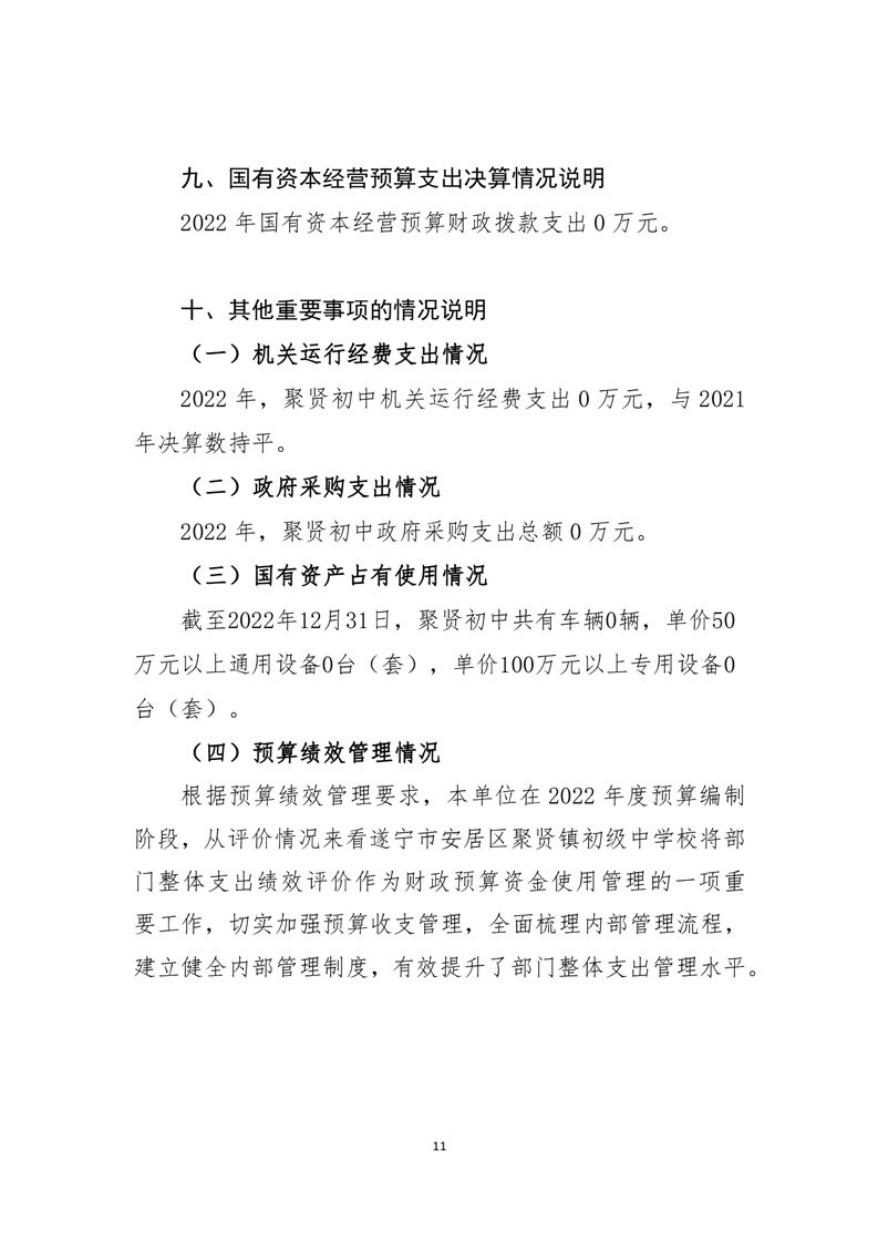 遂宁市安居区聚贤镇初级中学校2022年 决算