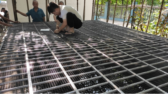 保石敬老院内设有一蓄水池,本意是在汛期蓄水,旱期用水。考虑到取水方便,蓄水池上就没有加盖保护装置。近年来随着自来水的推广和应用,蓄水池的作用已经逐渐被替代。与此相反,蓄水池带来的安全隐患则凸显出来。院内老人常徒步往来,稍不注意就有可能掉进水池的危险。故而7月31日,保石镇敬老院对院内蓄水池进行施工,在蓄水池上加盖了铁丝网。