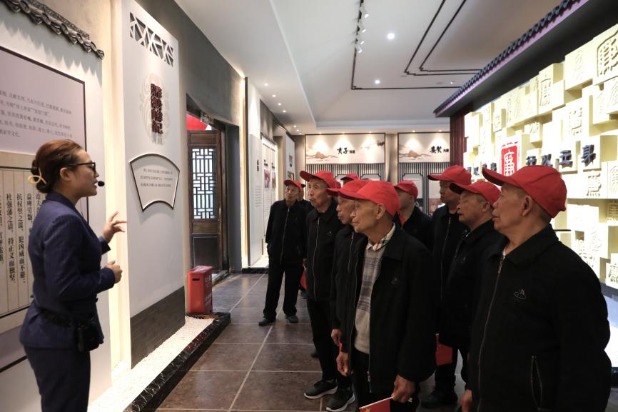 “黄峨能文工诗,尤擅散曲,她不仅是一代才女,更是立德树廉的代表。”跟随讲解员的步伐,老人们先后参观了黄峨生平馆、黄峨助廉馆、黄峨艺术馆、国学传习馆等地,从一幅幅字画中了解到黄峨杨慎夫妇的生平故事,知晓黄峨的艺术成就与人格之美。