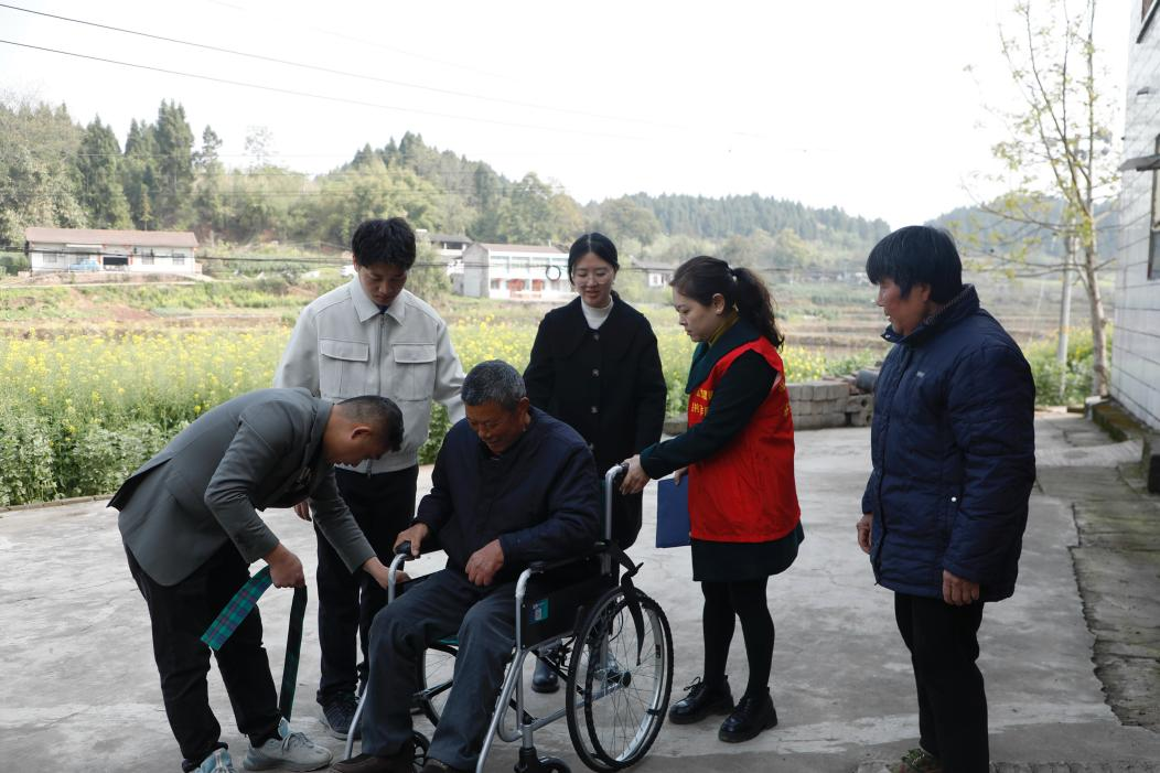 “杨大爷,轮椅给您送来了!。”一大早,镇村干部便将新轮椅送到杨荣华家中。上周四,杨大爷向入户的干部反映,自从脑梗后身体颇为不便,出行都靠拐杖,想要申请轮椅。