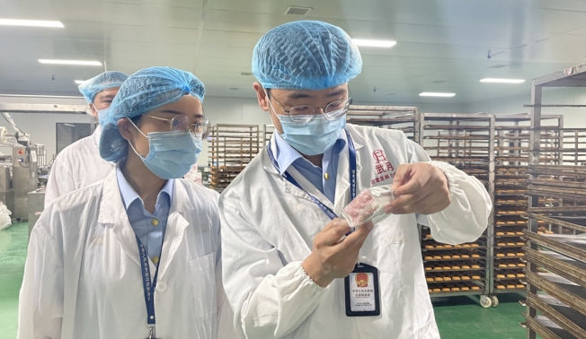 区市场监管局的工作人员深入月饼生产线,对月饼原材料制作、烘焙加工、包装入库、出厂检验等各环节进行监督检查。进入生产线便见工人们身穿工作服,头带发网帽,戴着手套,正各司其职赶制节前最后一批月饼订单,生产线上一片繁忙。针对现场发现的报废样品台账记录不完善问题,区市场监管局工作人员及时向企业提出整改建议,并要求厂家完善到位。