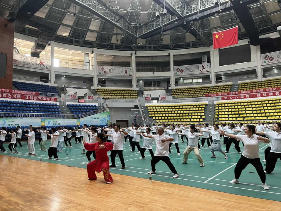 据悉,本次培训邀请专业老师进行授课,通过理论讲解和技术教学的方式,为大家耐心讲授“健身气功·八段锦”的动作功效及特点,并进行示范。学员们身着统一的运动服装,认真聆听讲解,仔细观摩示范,积极参与练习,逐步掌握了“八段锦”的基本动作。