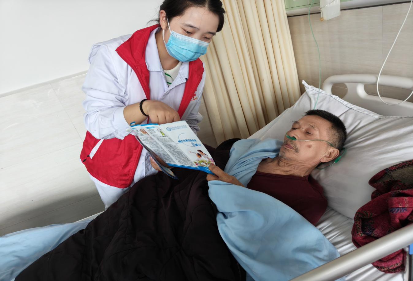 同时在心血管内科病区,红领天使志愿者向住院患者及家属普及高血压相关知识。