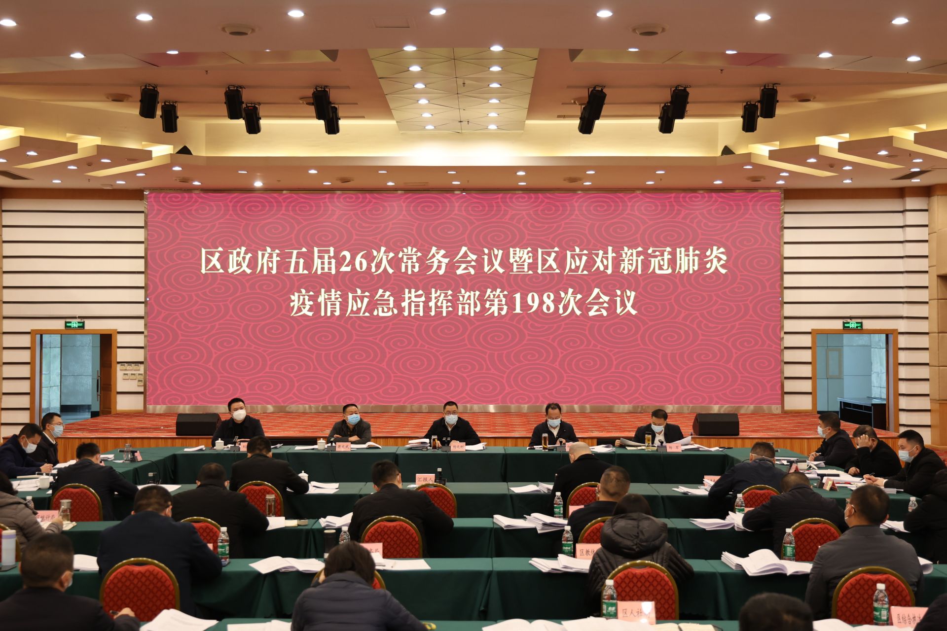 12月12日,区委副书记、区长、区应对新冠肺炎疫情应急指挥部指挥长杨文彬主持召开区政府五届26次常务会议暨区应对新冠肺炎疫情应急指挥部第198次会议,传达学习习近平总书记系列重要讲话、中央和省、市相关会议精神,安排部署安全生产、疫情防控、大气污染防治、耕地“进出平衡”等重点工作。