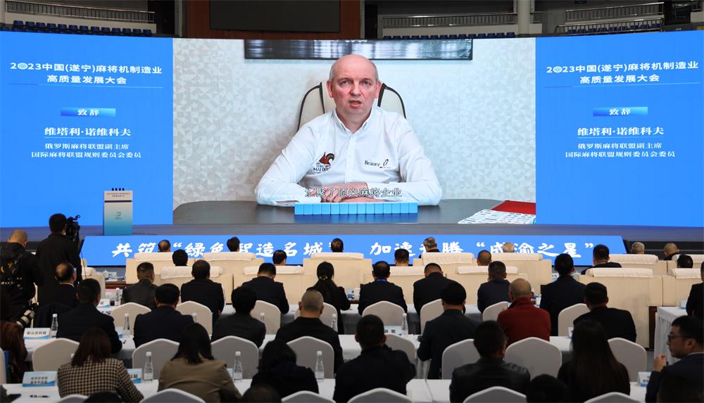 俄罗斯麻将联盟副主席、国际麻将联盟规则委员会委员维塔利·诺维科夫通过视频对大会的召开表示祝贺。他表示,中国麻将制造业有突出的鲜明优势和巨大潜力,希望通过大会,更深入了解中国实体经济和制造业,以大会为契机,推动国际之间进一步交流,期盼中俄之间人文交流更加深入。