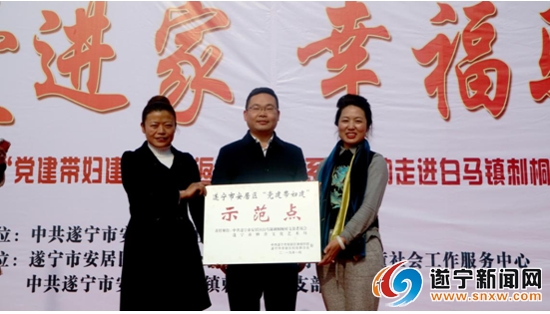 在新春佳节到来之际,1月31日,由安居区委组织部、区妇联联合开展的“党建带妇建”服务返乡农民工系列活动,走进白马镇刺桐垭村开展慰问女性农民工、留守儿童、留守妇女、留守老人和贫困党员,并为群众送去文艺演出、春联、中国妇女十二大、四川妇女十三大会议精神宣传画。当天,还邀请遂宁市妙善文化艺术坊在村设立“党建带妇建”示范点,服务、帮扶女性农民工回乡创业就业。安居区委常委、组织部长刘光辉出席并讲话,安居区委组织部副部长段守科,安居区妇联主席郭超群,白马镇党委书记唐智参加活动。