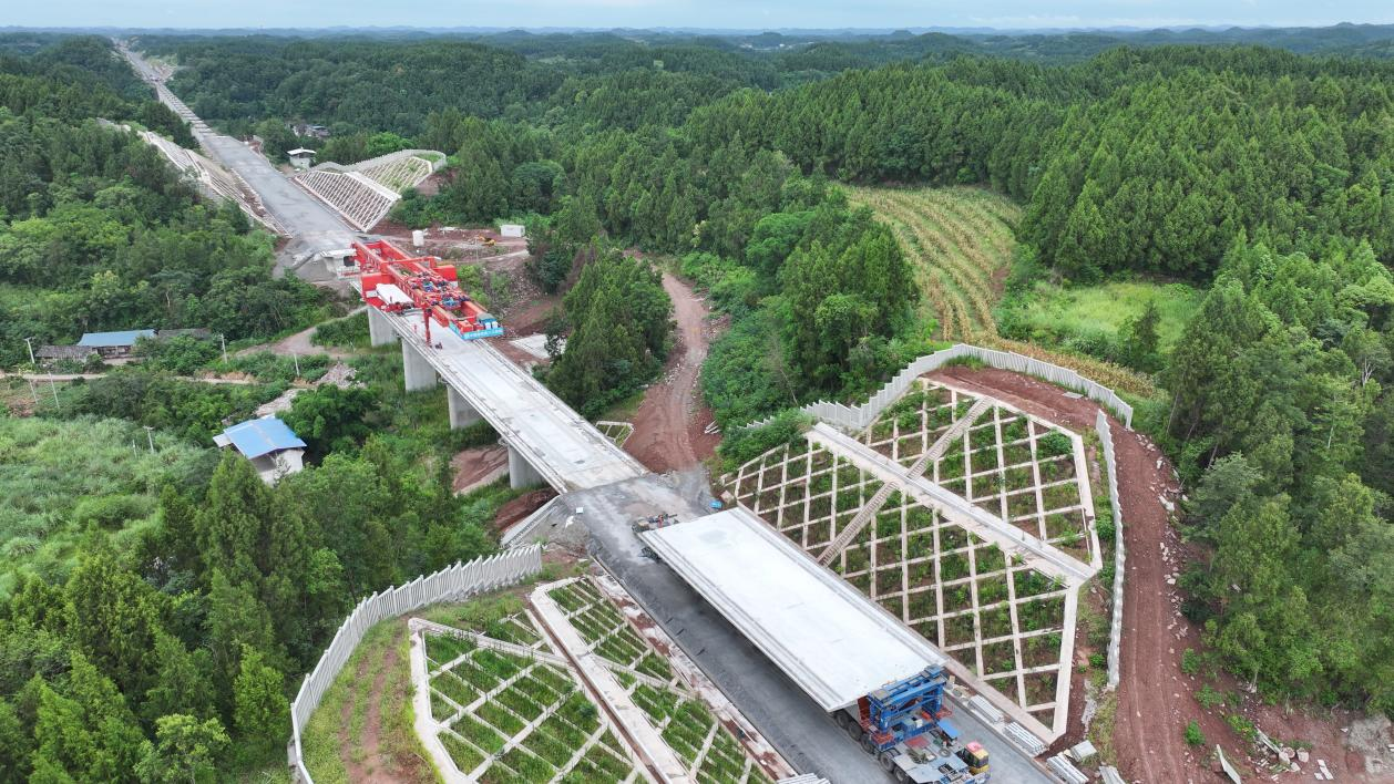 据了解,预计9月底,项目将完成大里程(至成都)方向415榀箱梁架设任务,占全部架梁任务的59.4%;10月初完成架桥机调头,向小里程(至重庆万州)方向架设剩余241榀箱梁。
