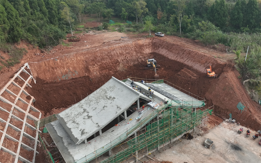 “目前,迎客区的主体建筑结构和室外边坡框架结构已施工完成,正加紧进行局部修坡及屋面防水层施工。”项目现场代表李志伟介绍,接下来将进行室内二次结构施工和室外边坡复绿工作,预计12月底全面完成主体建设。