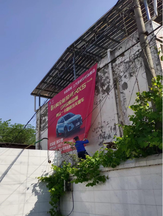 近日,区综合执法局工作人员巡查318国道时,发现沿路建筑物上悬挂的墙体广告均出现不同程度的破损,布幅随风飘扬,不仅影响市容市貌环境,也给过往车辆和行人构成威胁,存在较大的安全隐患。