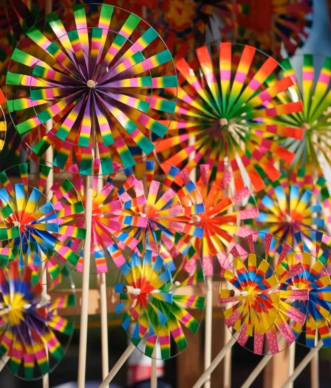 风车用独有的三种语言向人们诉说着文化故事,一是外形语言,二是图形语言,三是旋转语言。风车制作需要三十六道工序,包括风车杆、风车轴、泥鼓、风车轮的选材、下料、加工。南方风车材料以竹子为主,北方风车材料以高粱秆为主。