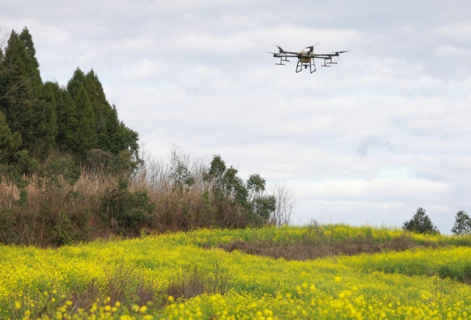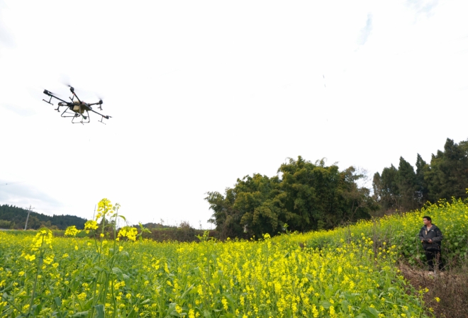 安居区:无人机“飞防” 绘写小春油菜“丰景”