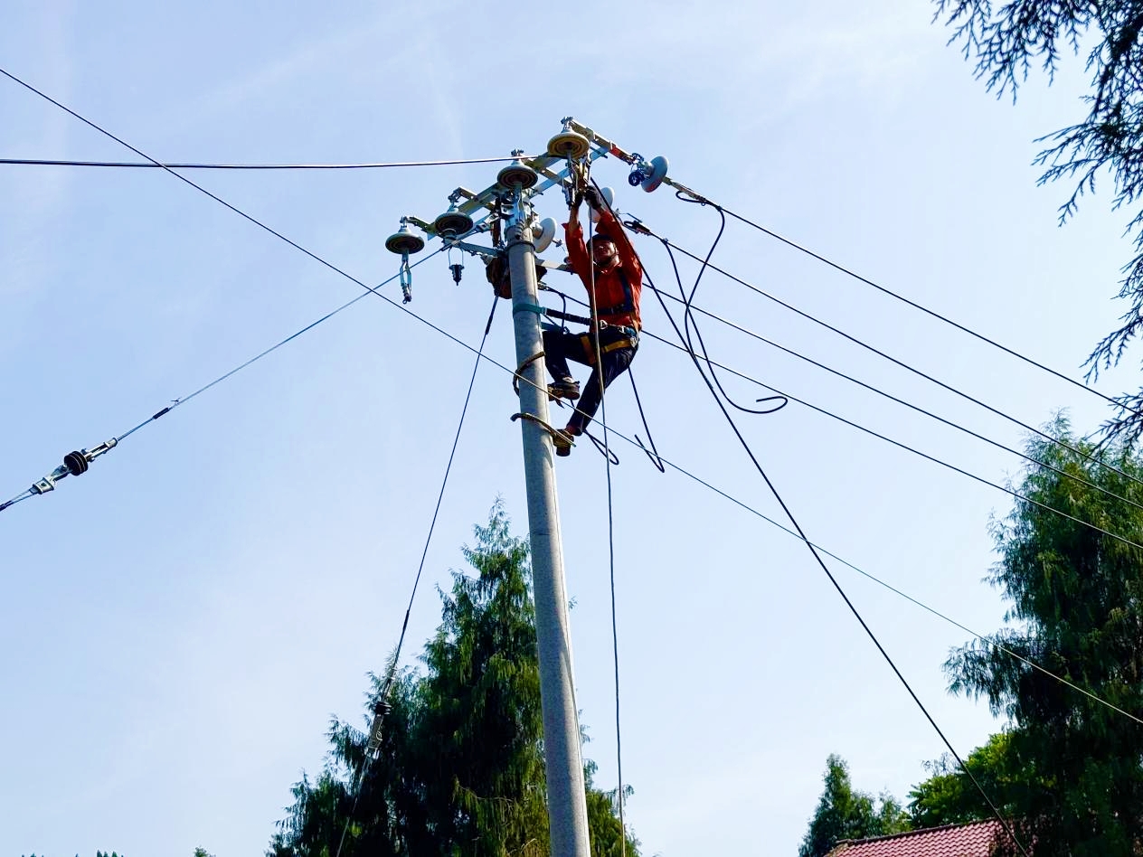 “等电网升级好,洗衣机、空调等电器用起来就能更稳定,夏天也不怕停电了!”6月17日,东禅镇响滩村村民向梳群望着不远处正在施工的电力工人,高兴地说道。响滩村农村电网整村改造项目现场,技术人员借助专业工具,动作娴熟地爬上电杆,地面上的工人们协同拉线,一派火热而有序的忙碌场面展现在眼前。