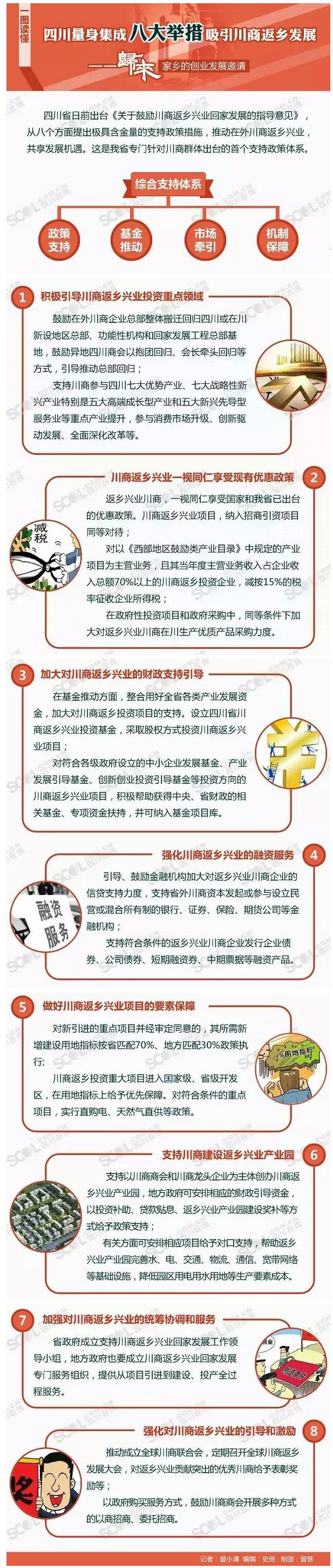 四川省日前出台《关于鼓励川商返乡兴业回家发展的指导意见》,从八个方面提出极具含金量的支持政策措施,推动在外川商返乡兴业共享发展机遇。这是我省专门针对川商群体出台的首个支持政策体系。 《意见》有哪些内容和亮点,含金量主要体现在哪些方面?戳下图看!