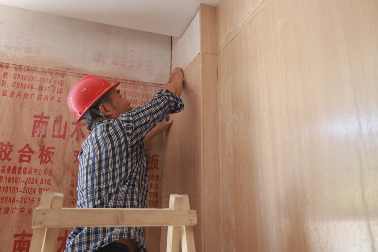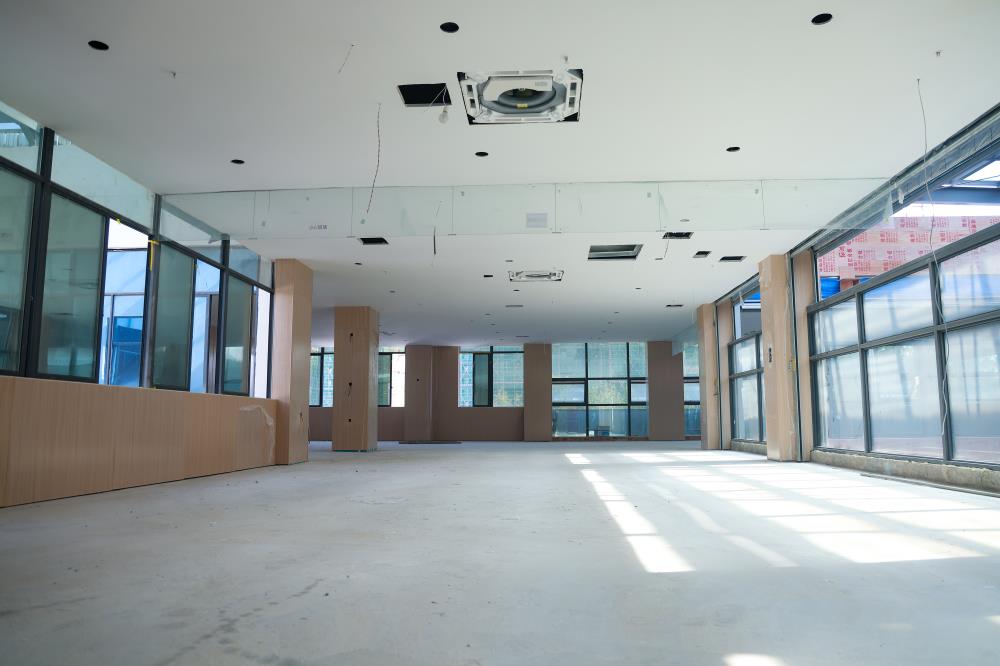 在项目施工现场,20余名工人正在进行地砖铺贴、环保塑胶地板铺设、集成墙板安装及喷漆等精细化作业。“目前项目总进度已达80%,接下来将加快推进项目,确保10月项目整体完工并投入使用。”项目施工经理何祥介绍,在施工过程中,选用环保材料,并对墙面和地面进行了专业的防滑处理,同时加装了防护栏,全方位保障孩子们的安全。