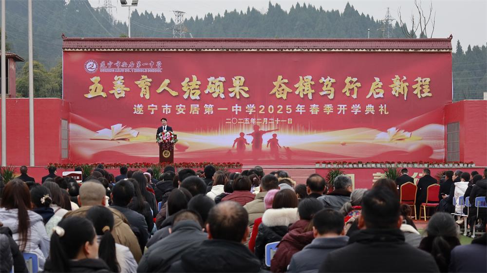2月21日,安居一中学2025年春季开学典礼举行,激励全体师生在新学期振奋精神、锐意进取,营造浓厚的开学氛围,增强师生的责任感和使命感,为新学期的工作和学习奠定坚实基础。