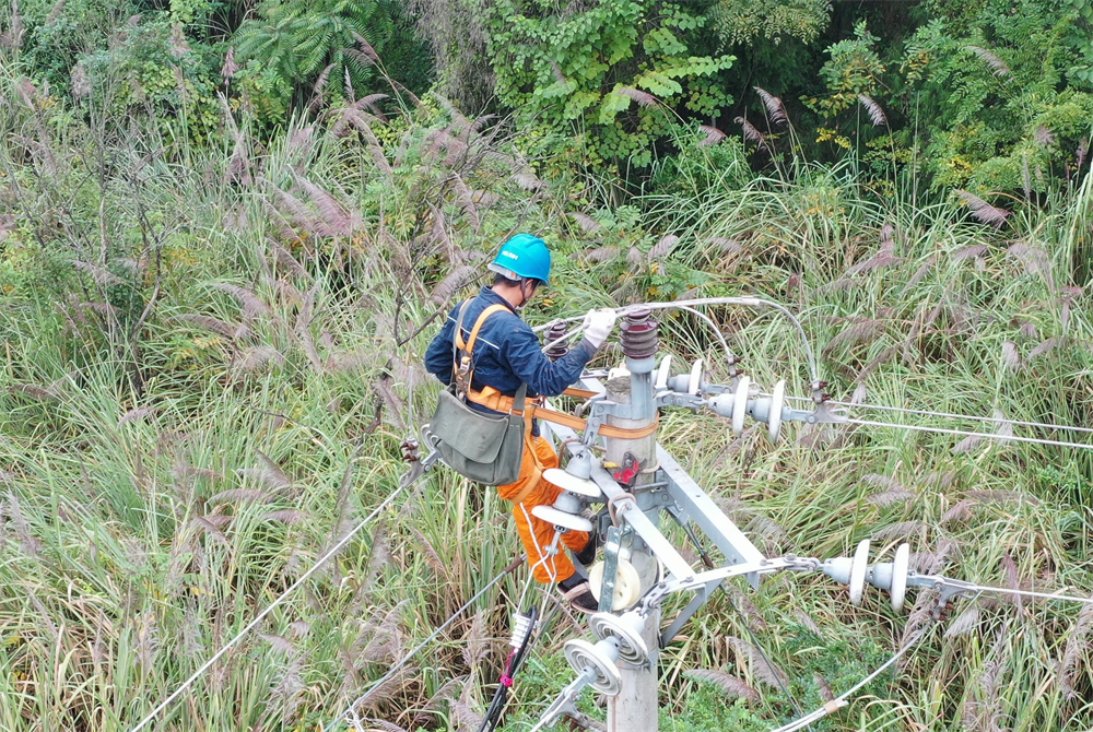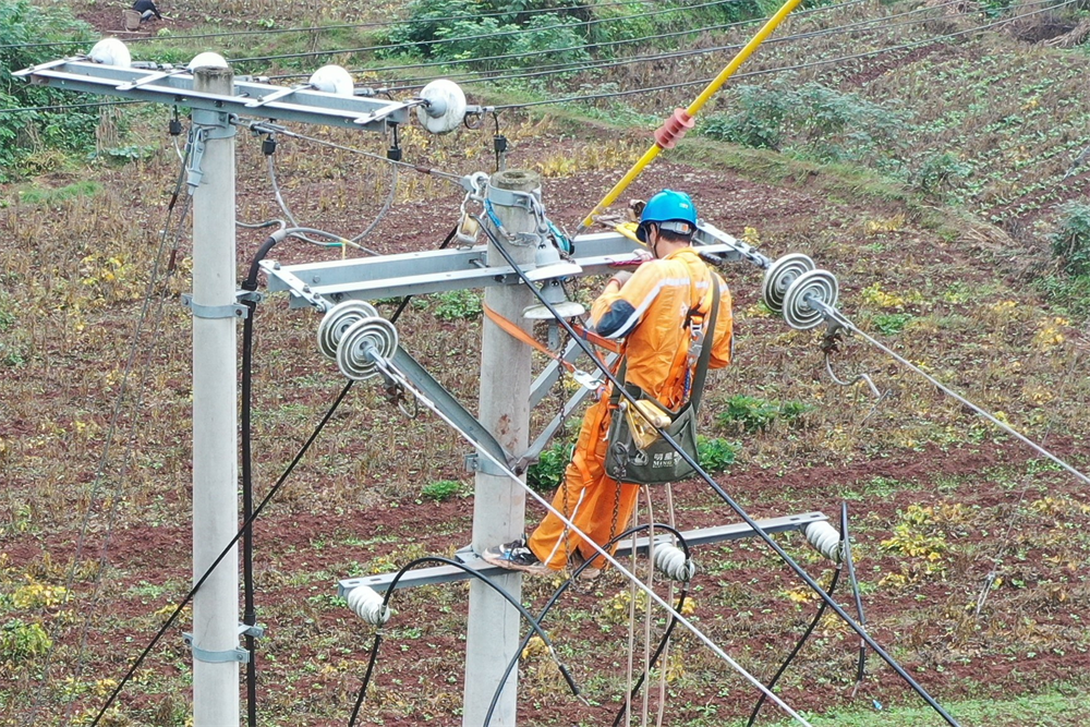“准备就绪,开始牵引。”11月13日上午,在白马镇筒竹湾,伴随着指令声,一根根绝缘线被成功牵引,该村5社支线4号杆至7号杆线路绝缘化改造工作进入收尾阶段。
