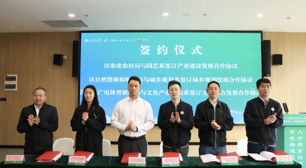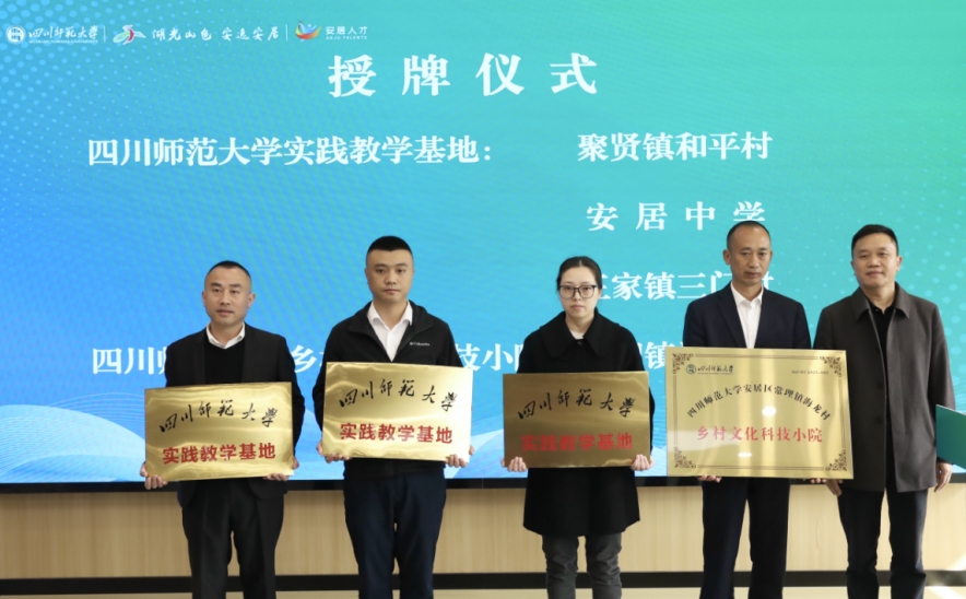 仪式上,区农业农村局与四川师范大学遂宁校区园艺系签订产业建设发展合作协议;区自然资源和规划局与四川师范大学遂宁校区城乡规划系签订城乡规划发展合作协议;区文化广电体育旅游局与四川师范大学遂宁校区文化产业管理系签订文旅融合发展合作协议。会上成立了大学生服务队,并举行了授牌仪式,在聚贤镇和平村、安居中学、三家镇三门村授牌成立了三个四川师范大学实践教学基地,在常理镇海龙村授牌成立了四川师范大学乡村文化科技小院。
