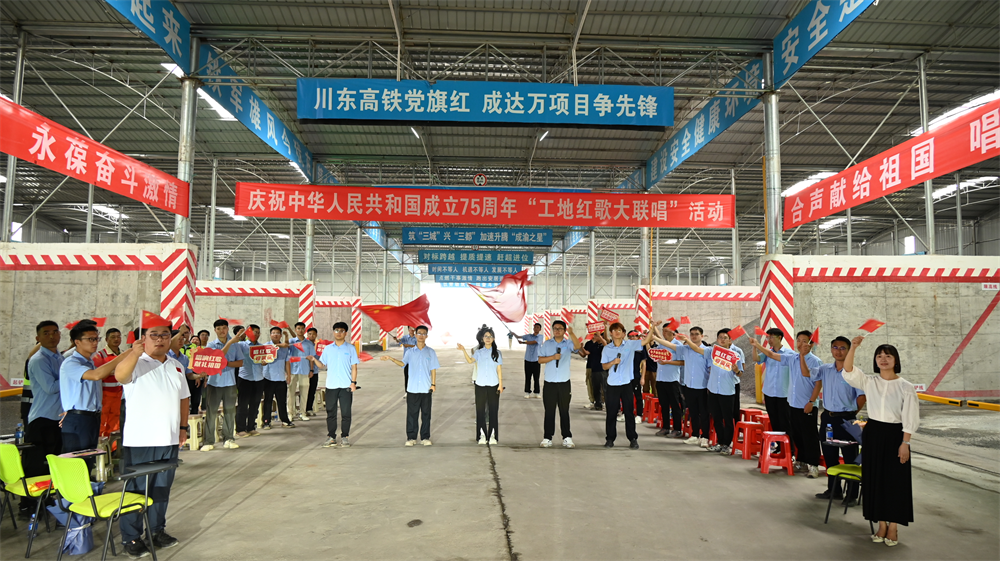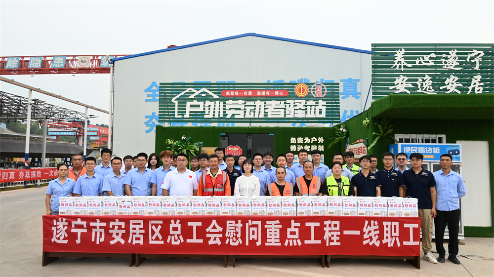 宣讲结束后,工友们用歌声祝福祖国繁荣昌盛,《我们走在大路上》《我爱你中国》《我和我的祖国》一首首振奋人心的歌曲将现场氛围推向高潮。随后,安居区总工会对中建八局项目一线职工进行了慰问,为他们送上了工会“娘家人”关心关怀和节日祝福,叮嘱他们注意做好自身防护和安全,祝福他们国庆节快乐。