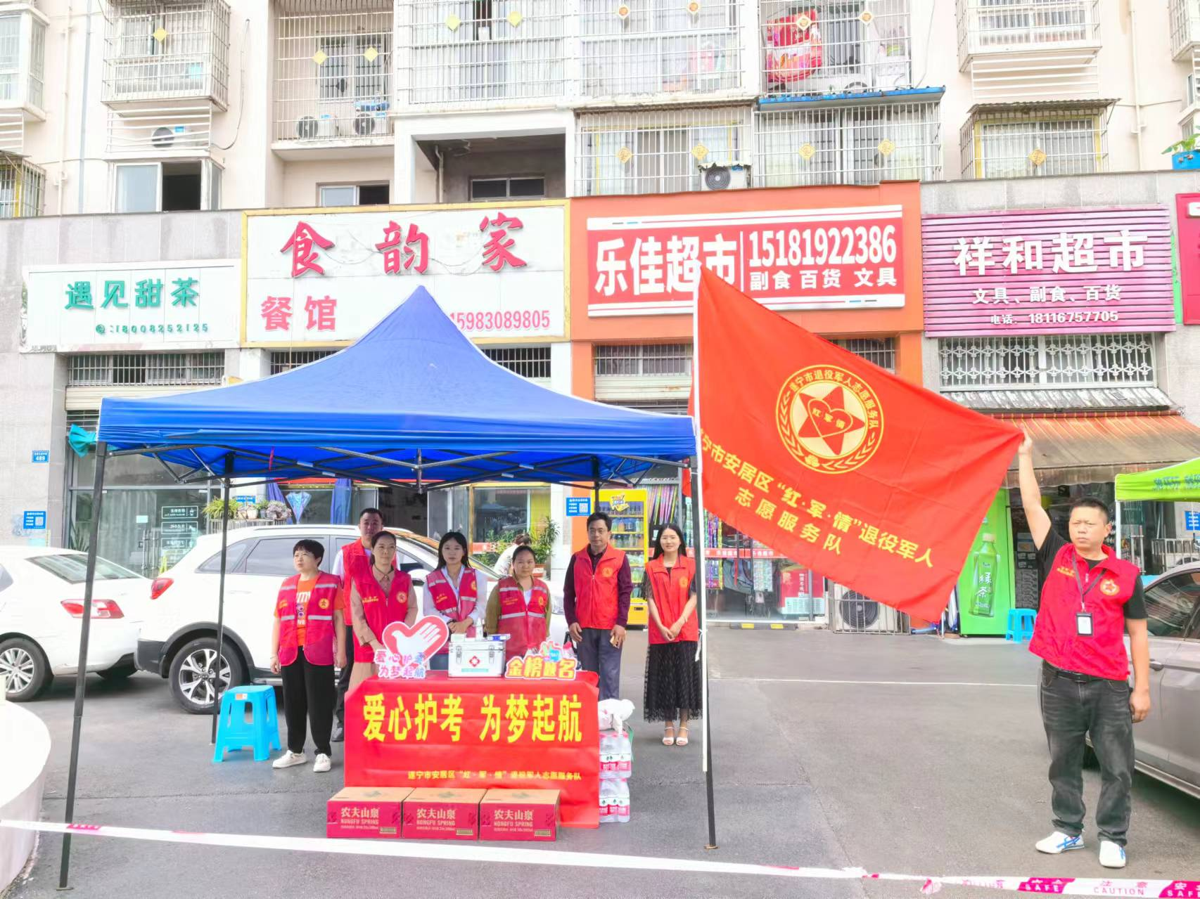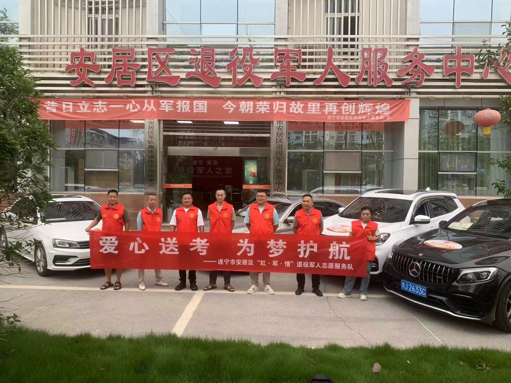 “莘莘学子寒窗苦读,功成名就只待今朝”,一年一度情系万家的高考又将开始了,为促进安居区新时代精神文明建设,进一步弘扬“奉献、友爱、互助、进步”的志愿精神,方便考生出行,保证他们安全顺利参加高考,为考生营造安全温馨的考试环境,遂宁市安居区退役军人事务局、安居区融媒体中心联合各镇、街道退役军人服务站开展“爱心助考”志愿服务活动,组织区“红·军·情”退役军人志愿服务队,为广大考生提供免费路途接送、爱心助考驿站等活动,让考生能够顺利参加考试。