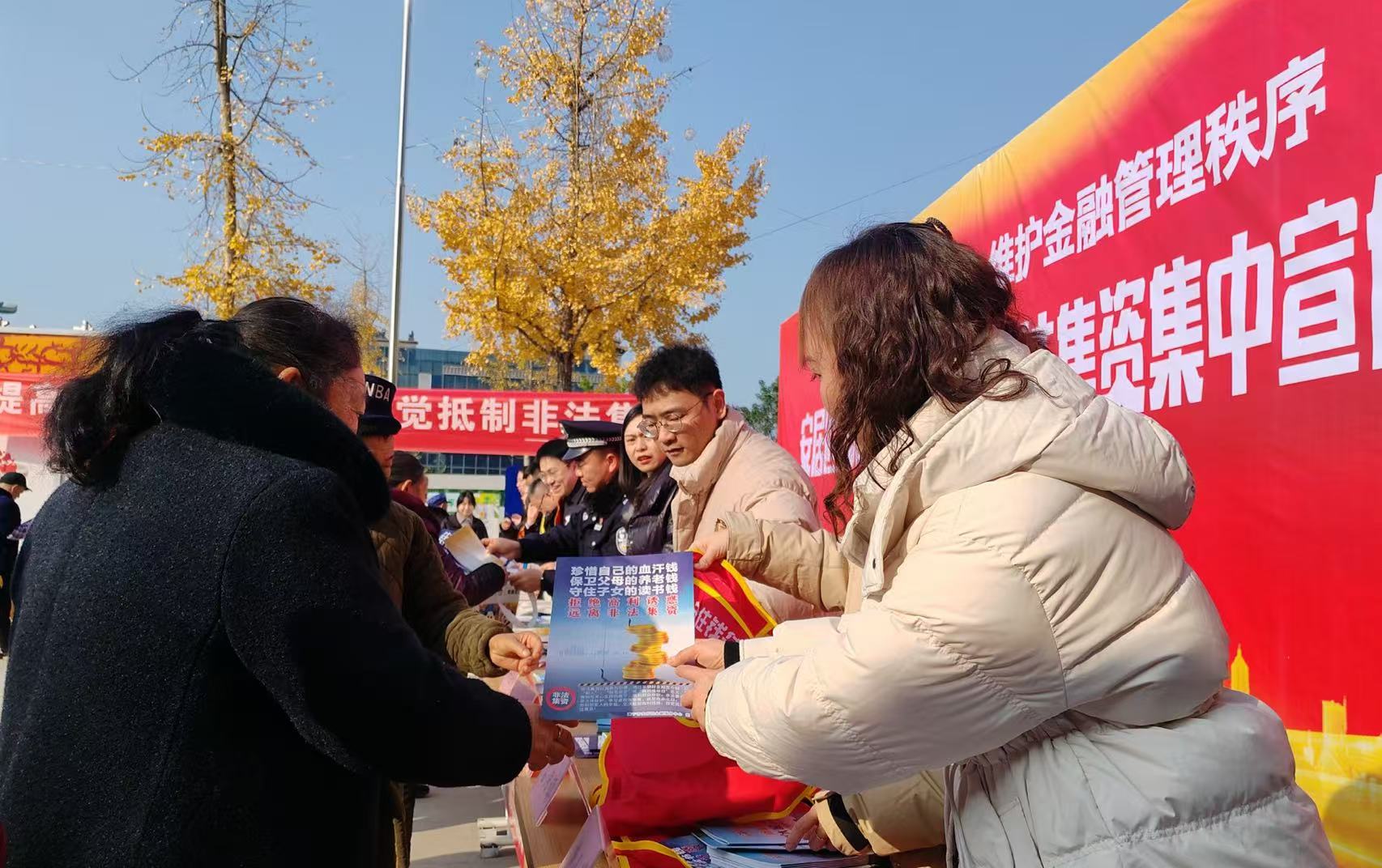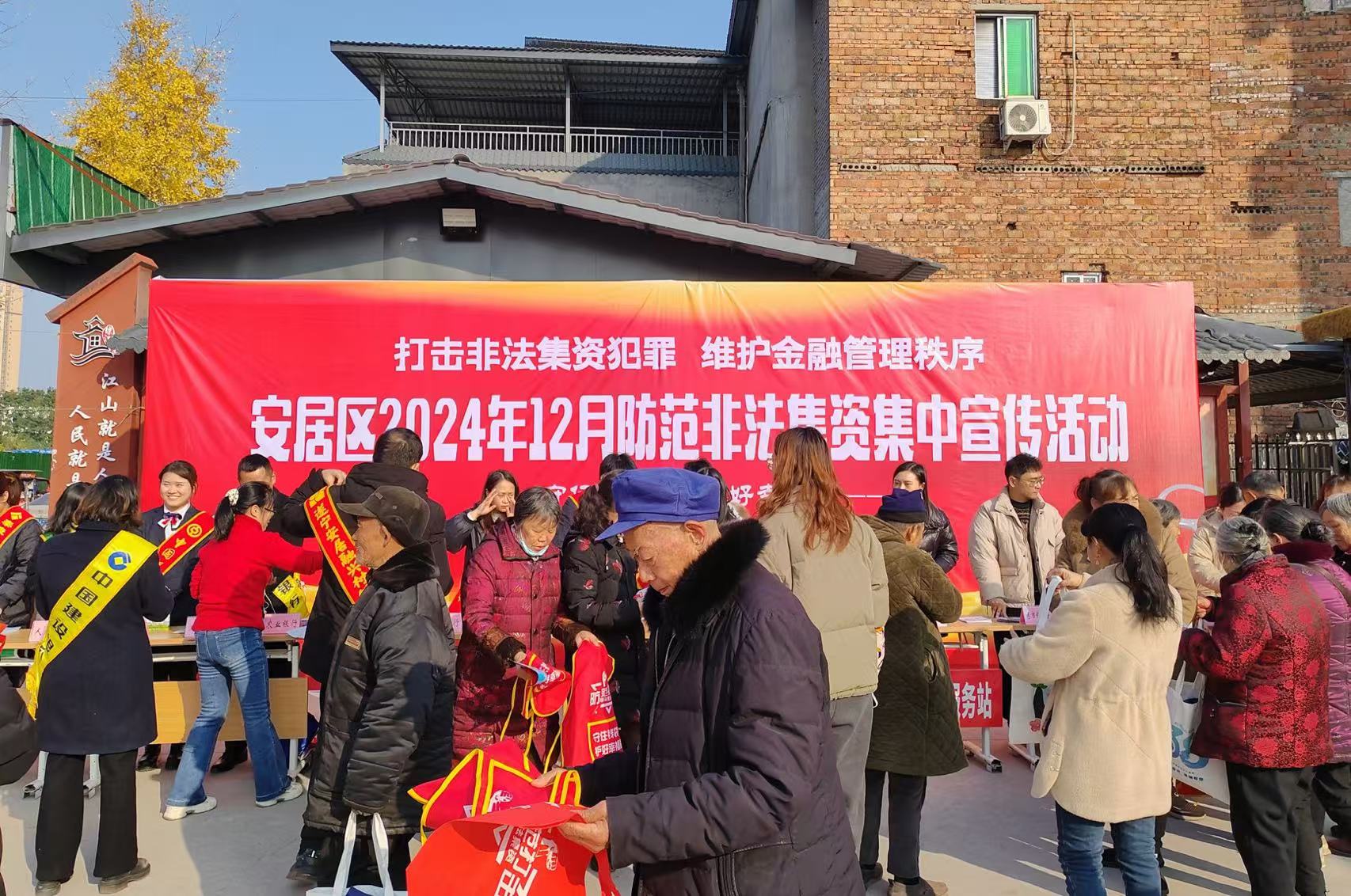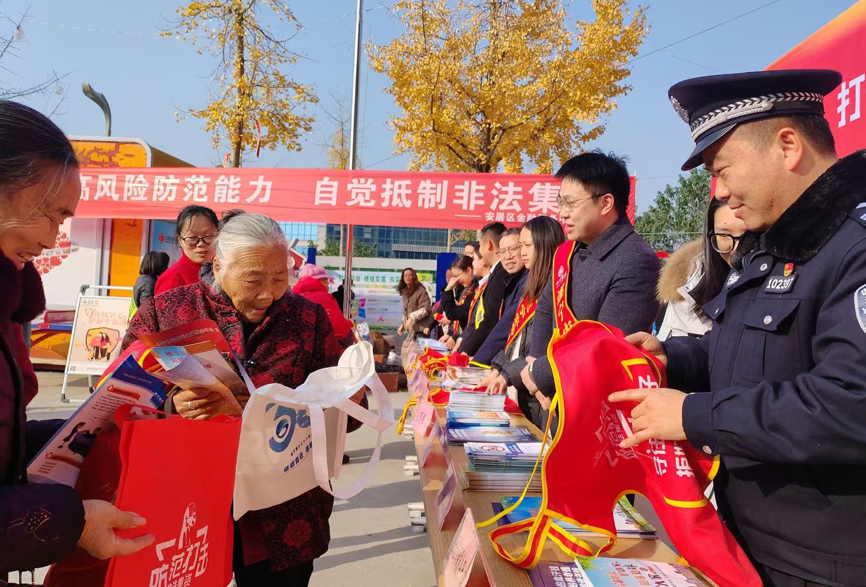 为进一步普及金融法律法规,增强人民群众对非法集资的防范意识和能力,12月16日,安居区开展2024年12月防范非法集资集中宣传活动,打好防范化解金融风险持久战,优化金融环境。