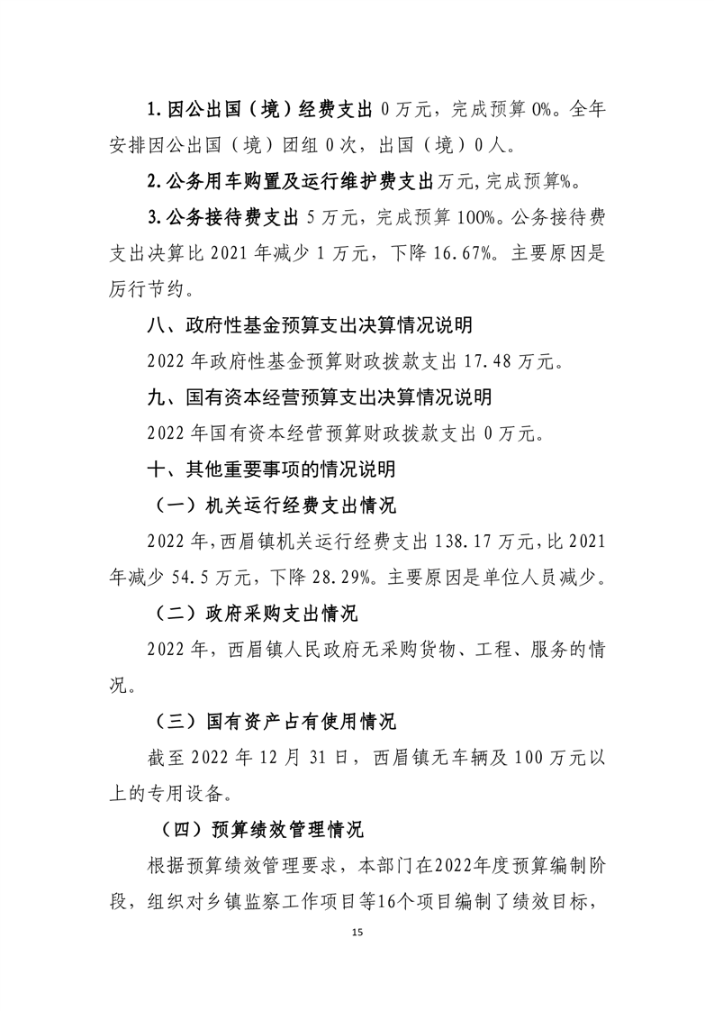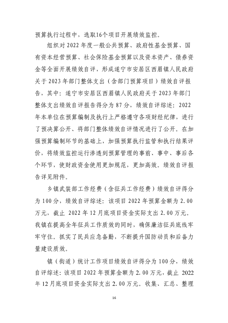 2022年遂宁市安居区西眉镇人民政府部门决算公开