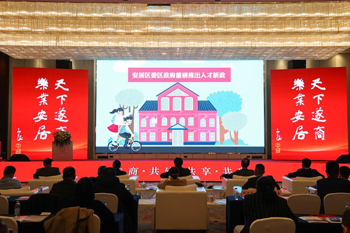 会上,与会人员共同观看《做强“安居极核” 升腾“成渝之星”——安居区筑“三城”、兴“三都”对标赶超周年记》专题片和“安居吸引力”人才工作宣传片。安居区委常委、常务副区长何龙宣读了区委、区政府向商会的贺信,区委常委、统战部部长、区经合局党组书记杨军围绕“携手共绘蓝图、聚力共谋发展”开展了专题招商引资推介。会议还发布了安居区二十四条人才新政。