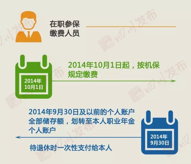 ◆单位和个人应在转移养老保险关系和个人账户的基础上,从2014年10月1日起,分别按照机保制度规定缴费,2014年10月1日以后已在原试点的缴费额应予以抵扣。
