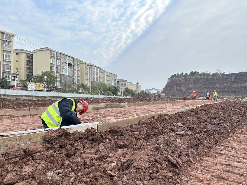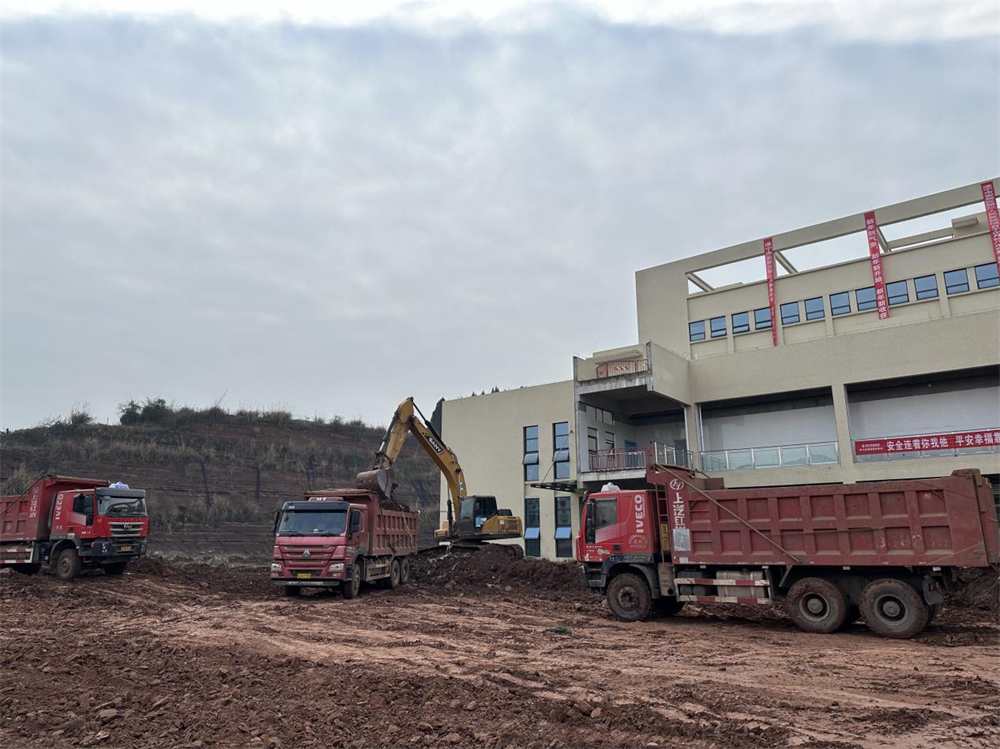 近日,记者来到安居区第三人民医院项目一期二标段建设现场看到,现场一片火热的施工场景,挖掘机正在进行土石方的清理与平整,工人们则在进行施工便道的铺设准备工作。
