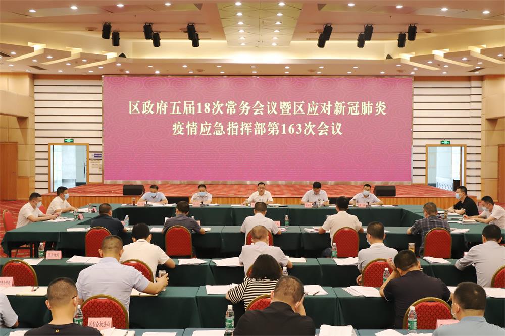 5月30日,区委副书记、区长、区应对新冠肺炎疫情应急指挥部指挥长杨文彬主持召开区政府五届18次常务会议暨区应对新冠肺炎疫情应急指挥部第163次会议,传达学习中央和省、市相关会议精神,安排部署疫情防控、经济运行、防汛抗旱、地质灾害防治、安全生产、森林防灭火等当前重点工作。