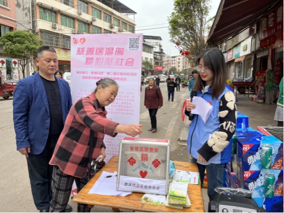 为进一步扩大慈善基金宣传力度,提高磨星慈善基金会的知晓率,强化磨星慈善基金会影响力,遂宁市安居区鼎恒清盛社会工作服务中心在安居区民政局、安居区慈善会、安居区社工总站的牵头下,联合磨溪镇政府、高千社区、永佳超市以及爱心志愿者,于3月22日开展了“爱在磨溪·共建慈善”磨溪镇磨星慈善基金宣传活动。活动旨在通过开展慈善公益活动,为广大群众普及慈善知识并献出爱心,为公益慈善事业助力。