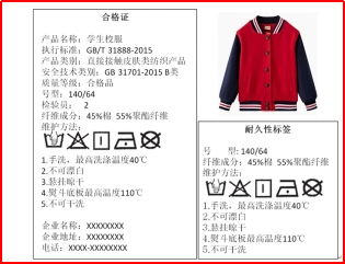 购买时应查看标签标识,标签上应标注:厂名厂址、产品名称、纤维成分、规格型号、洗涤方法、执行标准(如下图)、安全类别、合格标志等。
